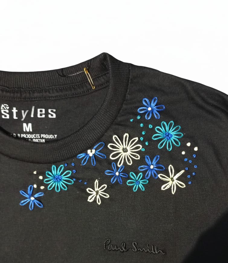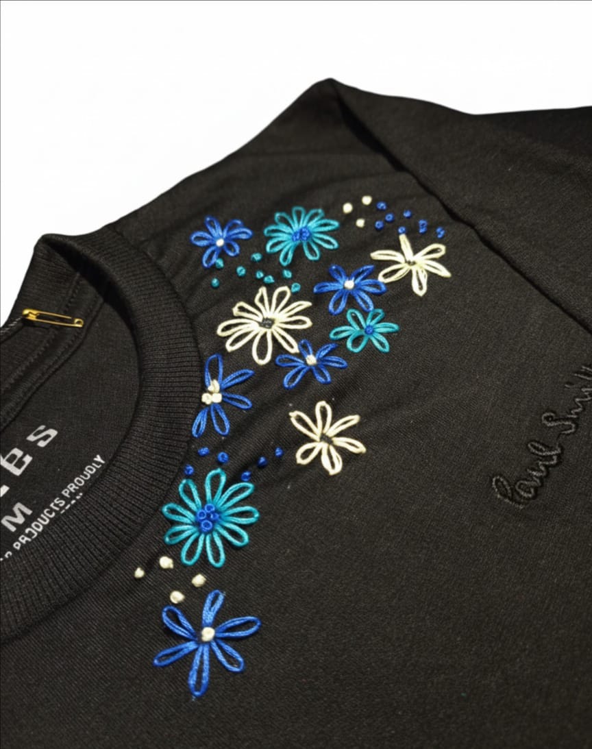Blues of Daisy-Hand Embroided Cotton Shirt