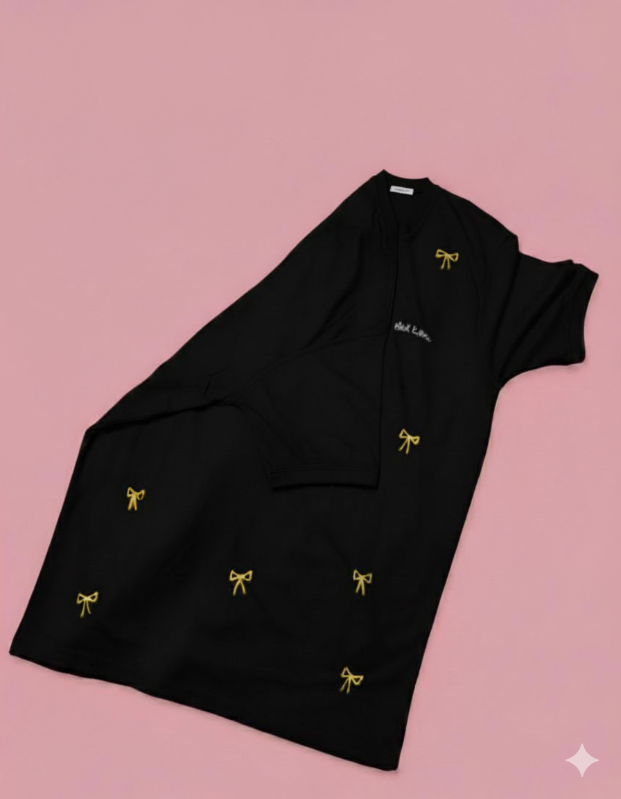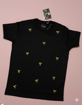 Black shirt with yellow thread”