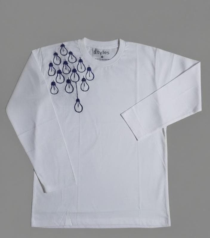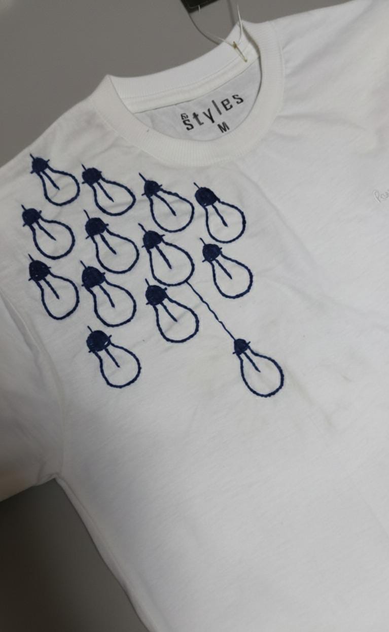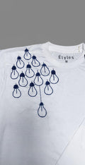White Tee with Blue Bulb Design
